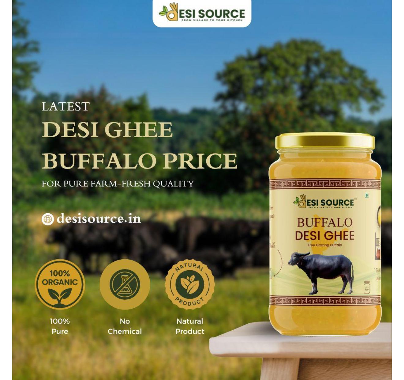 Understanding the correct Desi Ghee Buffalo Price helps you make a healthier and smarter buying decision. Pure buffalo ghee offers a higher fat content, richer flavor, and long shelf life when compared to ordinary cooking fats. Crafted from fresh buffalo milk, it is free from artificial additives and preservatives. Desi Source is trusted for maintaining strict quality standards from sourcing to packaging, ensuring every batch meets traditional purity benchmarks. The price reflects farm-fresh quality, hygienic processing, and authentic taste. Ideal for daily meals and special occasions, this ghee supports both nutrition and tradition.