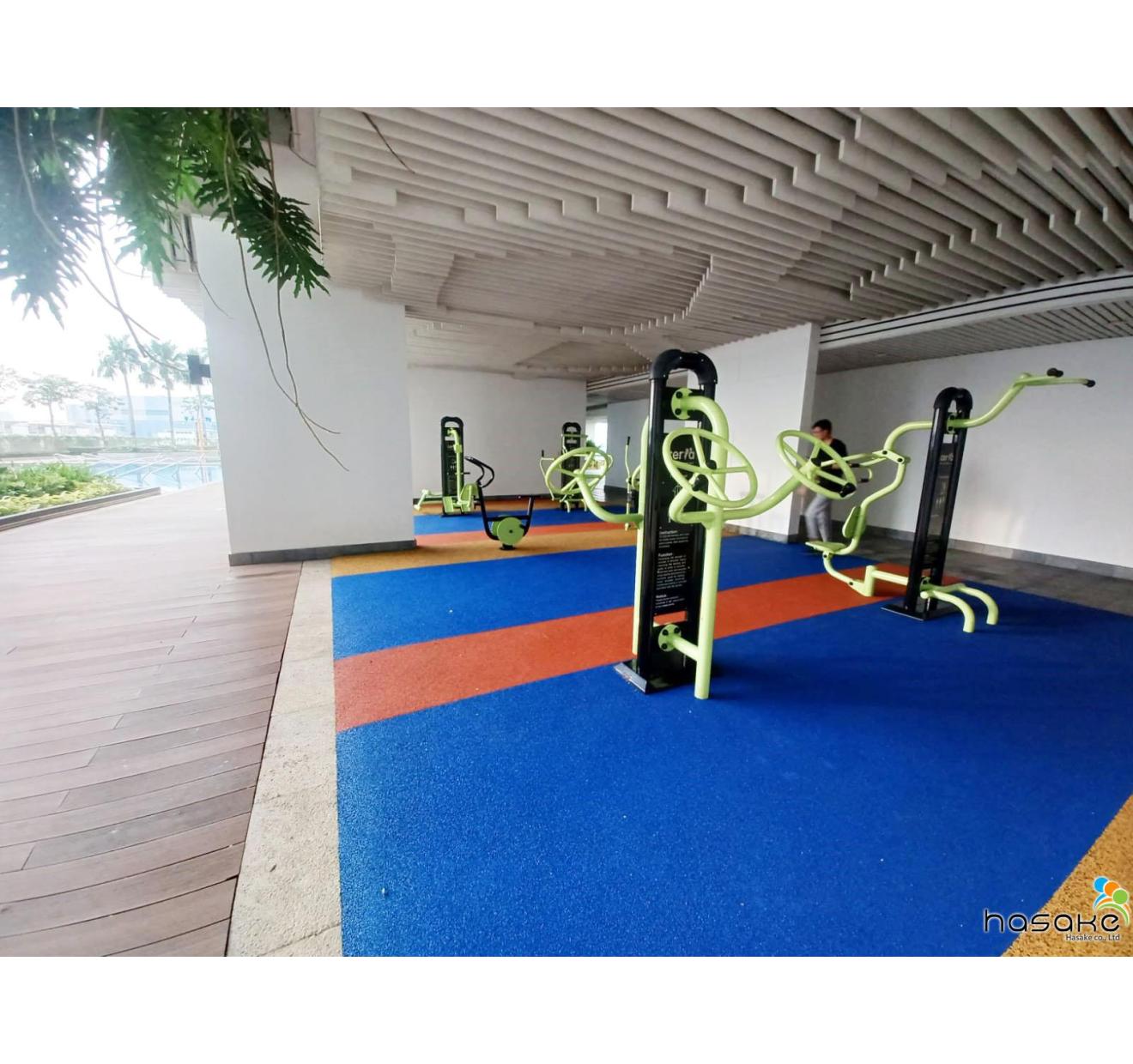 Hasake Play provides customize in the design, supply and installation of outdoor and indoor playground equipment with EPDM flooring for children's playground equipment and safety flooring while ensuring creativity, interactive and safety aspects are incorporated in all our designs. Our range of products include integrated play sets, swings, seesaw, various spring riders, slides, kids play equipment, school playground equipment, open gym equipment, park exercise equipment, park fitness equipment, rope play equipment, garden playground equipment and outdoor fitness equipment. We also specialize in safety flooring for playground such as EPDM, interlocking mat and rubber tiles. Our playground equipment come in various pre-design or custom made which are suitable for public parks, residential parks, schools, hotels, shopping malls and various public amenity areas. Contact us for more information at info@hasakeplay.com.vn