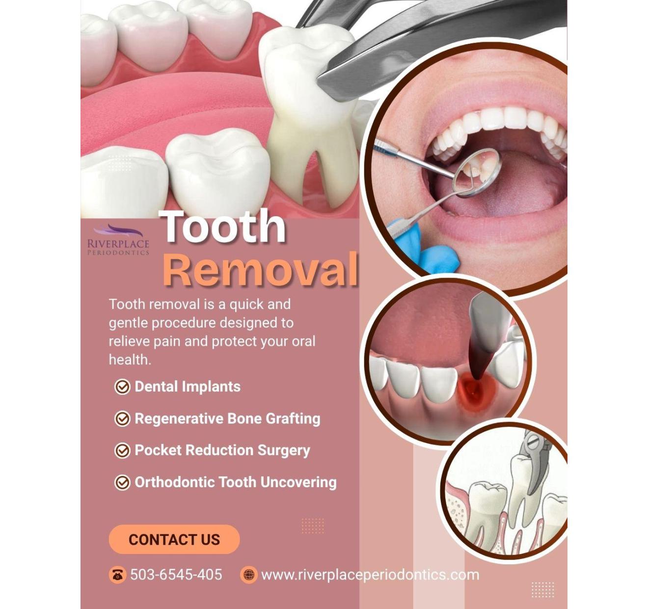 Persistent toothache? It might need extraction. Riverplace Periodontics offers professional tooth removal with aftercare. Contact us now to evaluate your condition.