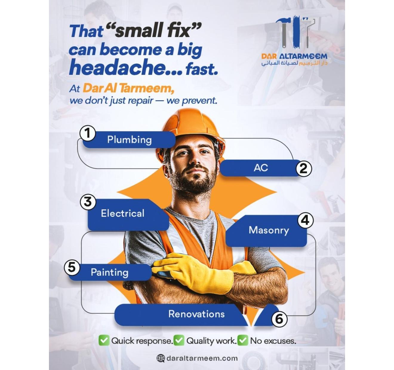 Dar Al Tarmeem ensures your property is maintained and upgraded with quality, care, and precision — making every space more functional and beautiful.