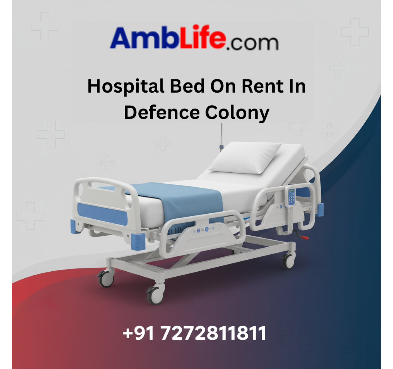 Facing a medical situation at home? AMBLife offers an affordable and reliable solution for a Hospital Bed On Rent In Defence Colony. We specialize in providing well-maintained, adjustable hospital beds that cater to various patient needs. Our process is simple and transparent, designed to reduce your stress during difficult times. With a focus on hygiene and customer care, we ensure quick delivery and installation across Defence Colony. Let AMBLife be your support system for quality home medical equipment. Reach out to us at +91-7272811811 for more details.