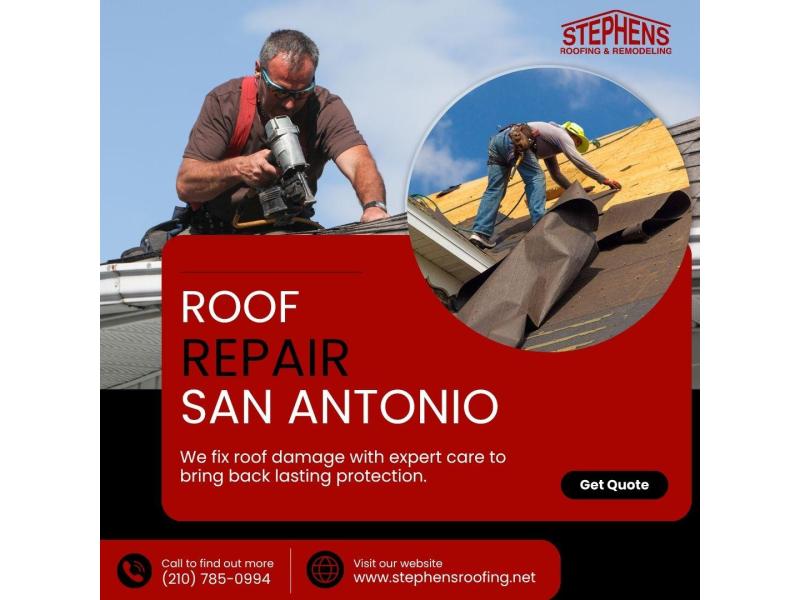 Small roofing problems can quickly turn into serious damage if not handled at the right time. At Stephens Roofing & Remodeling, we provide professional roof repair in San Antonio, identifying problem areas accurately and fixing issues like leaks, damaged shingles, and worn components with dependable workmanship. Our goal is to restore your roof’s integrity and keep your property protected. Book your inspection with our team today!