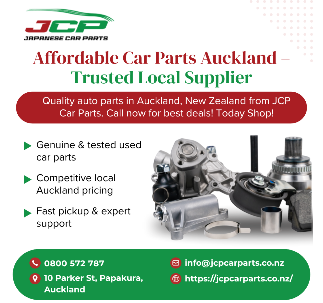 Keep your vehicle running smoothly with premium recycled components. JCP Car Parts offers top Mazda car parts Auckland with affordable price. Get tested parts, competitive prices, eco-friendly solutions, fast availability, and expert guidance — all designed to extend vehicle lifespan while saving money. If you want reliable Kia car parts Auckland with best price, JCP Car Parts is the best place for you. With a customer-first approach, we always provide reliable quality. Therefore, the best value option for repairs, upgrades, and restorations is the one from JCP Car Parts. Call us today to find the exact part you need!